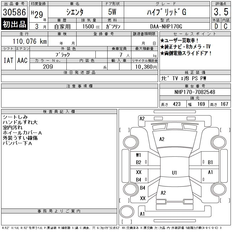 TOYOTA SIENTA HYBRID G - лот 30586
