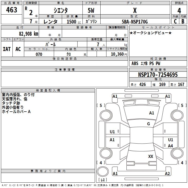 TOYOTA SIENTA X - лот 463