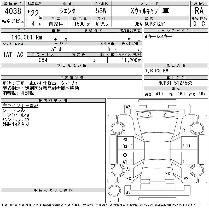 TOYOTA SIENTA X WELL CAB - лот 4038