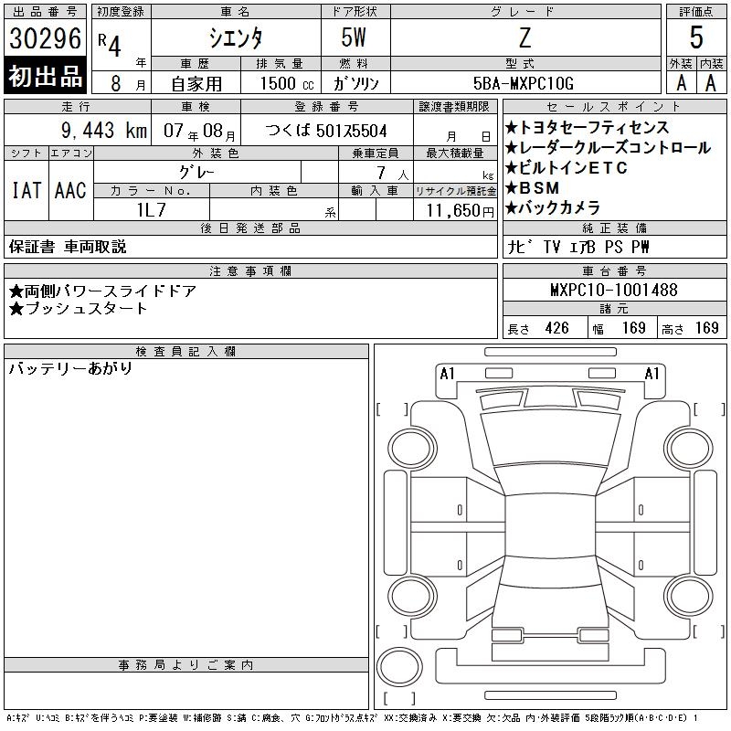 TOYOTA SIENTA Z - лот 30296