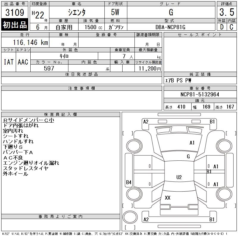 TOYOTA SIENTA G - лот 3109