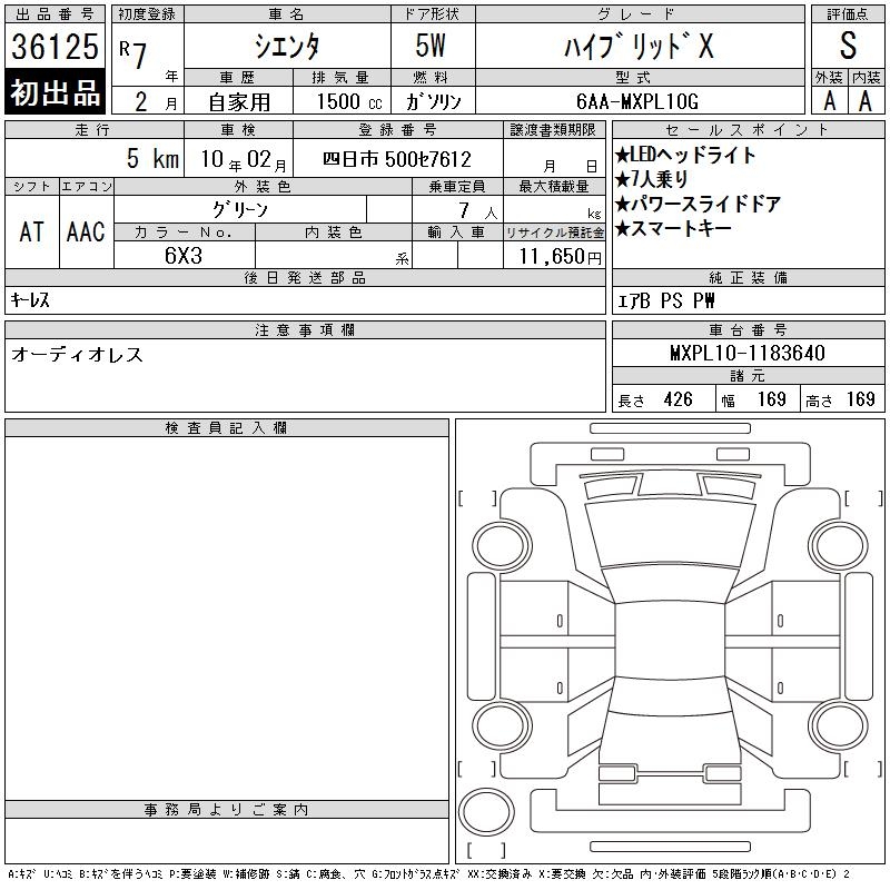 TOYOTA SIENTA HYBRID X - лот 36125