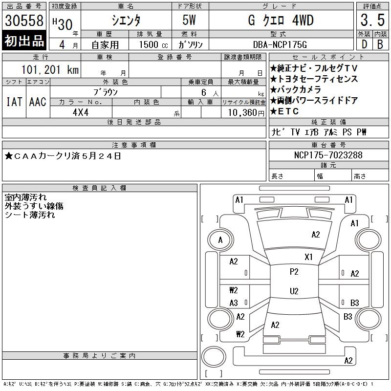 TOYOTA SIENTA GKERO4WD - лот 30558