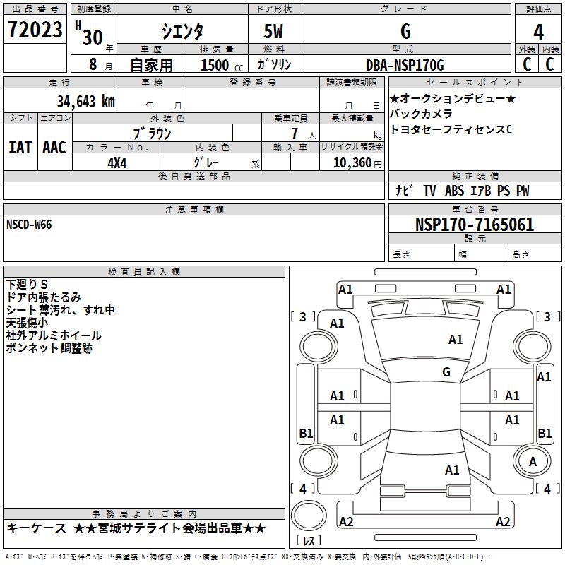 TOYOTA SIENTA G - лот 72023