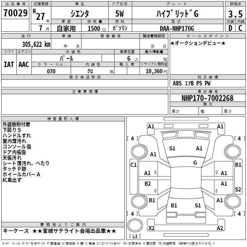 TOYOTA SIENTA HYBRID G - лот 70029