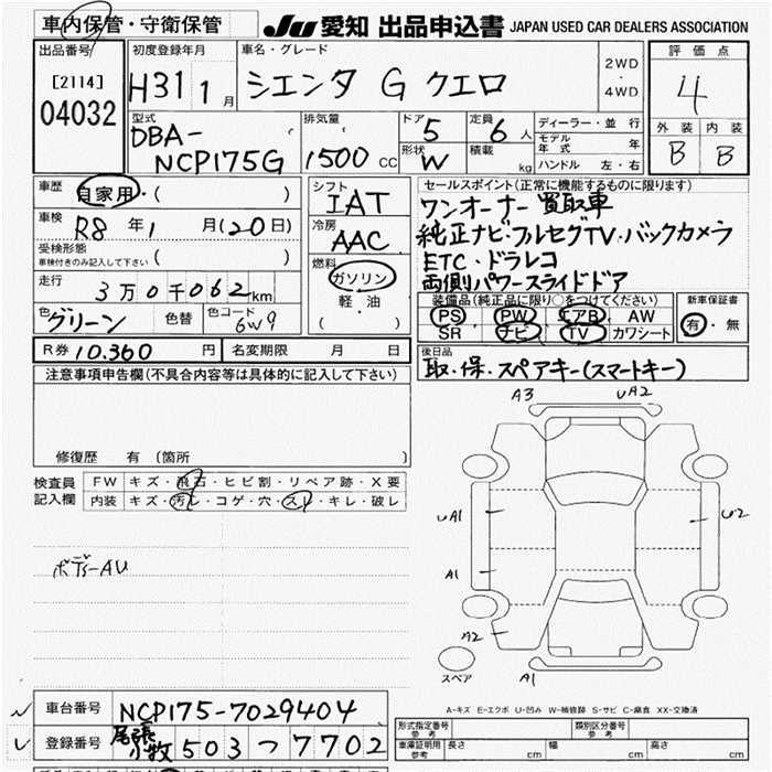 TOYOTA SIENTA GKERO - лот 4032