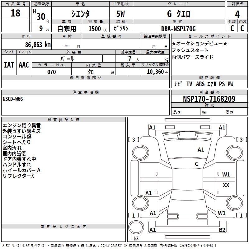TOYOTA SIENTA GKERO - лот 18