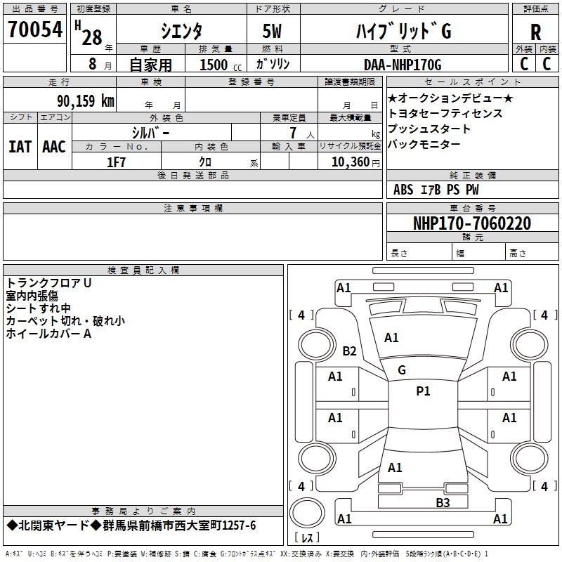 TOYOTA SIENTA HYBRID G - лот 70054