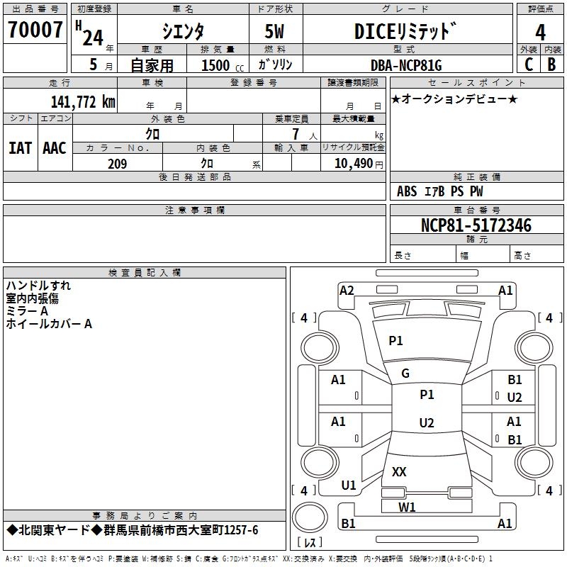 TOYOTA SIENTA DICE LIMITED - лот 70007
