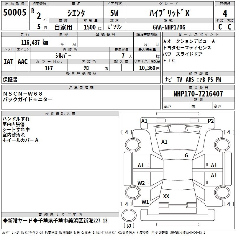 TOYOTA SIENTA HYBRID X - лот 50005