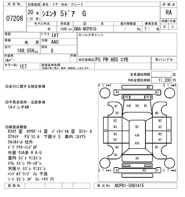 TOYOTA SIENTA G - лот 7208