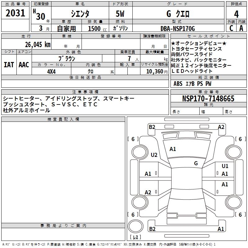 TOYOTA SIENTA GKERO - лот 2031