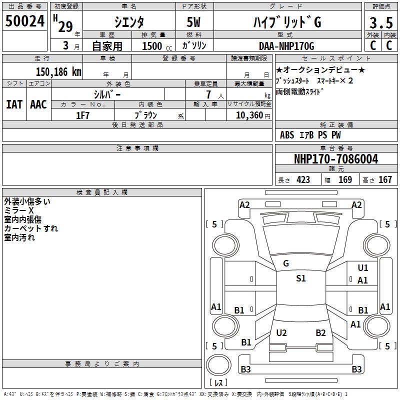 TOYOTA SIENTA HYBRID G - лот 50024