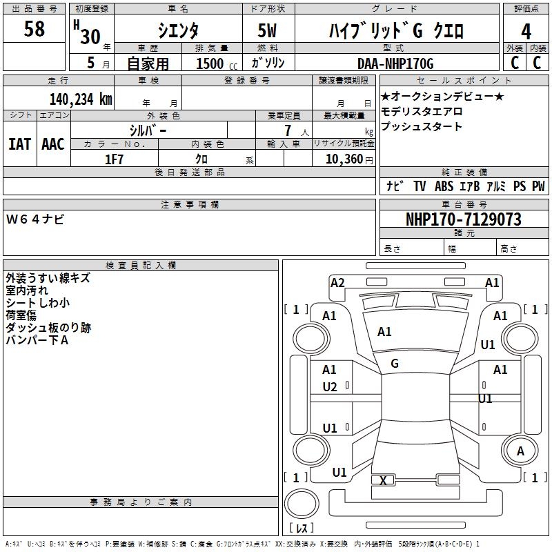 TOYOTA SIENTA HYBRID GKERO - лот 58