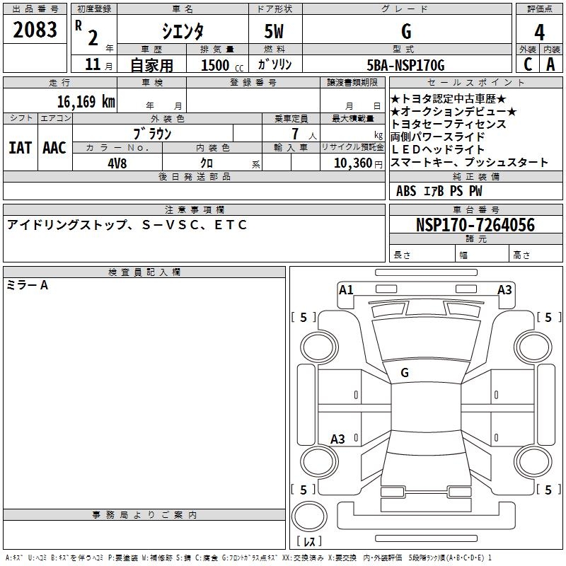 TOYOTA SIENTA G - лот 2083