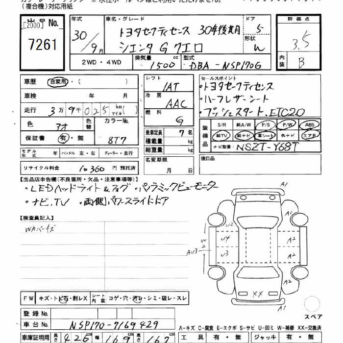 TOYOTA SIENTA GKERO TOYOTA SAFETY SENS - лот 7261