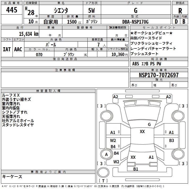 TOYOTA SIENTA G - лот 445