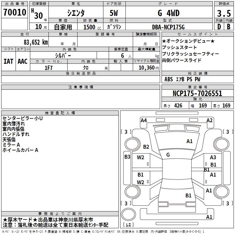 TOYOTA SIENTA G 4WD - лот 70010