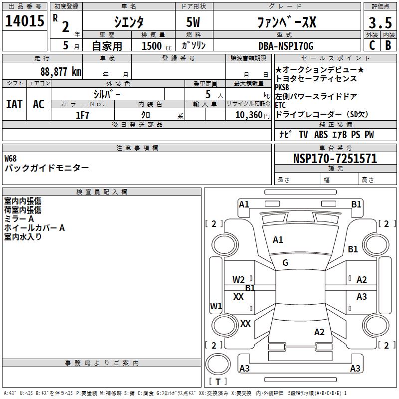 TOYOTA SIENTA FAN BASE X - лот 14015