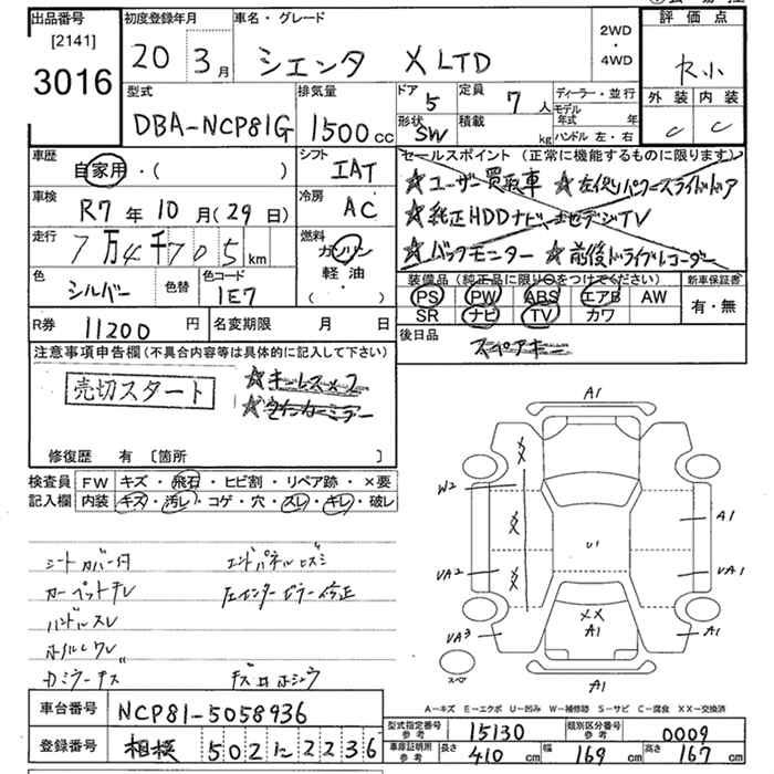 TOYOTA SIENTA X LTD - лот 3016