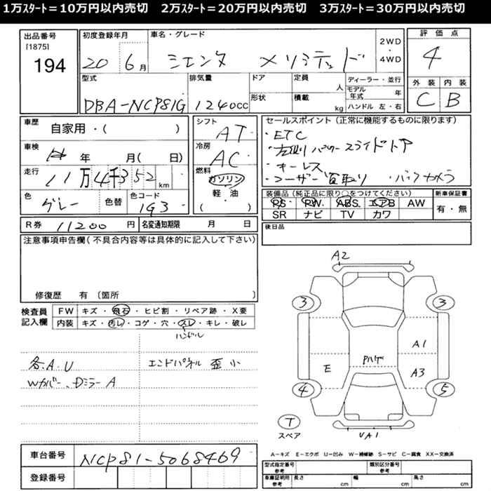 TOYOTA SIENTA X LTD - лот 194