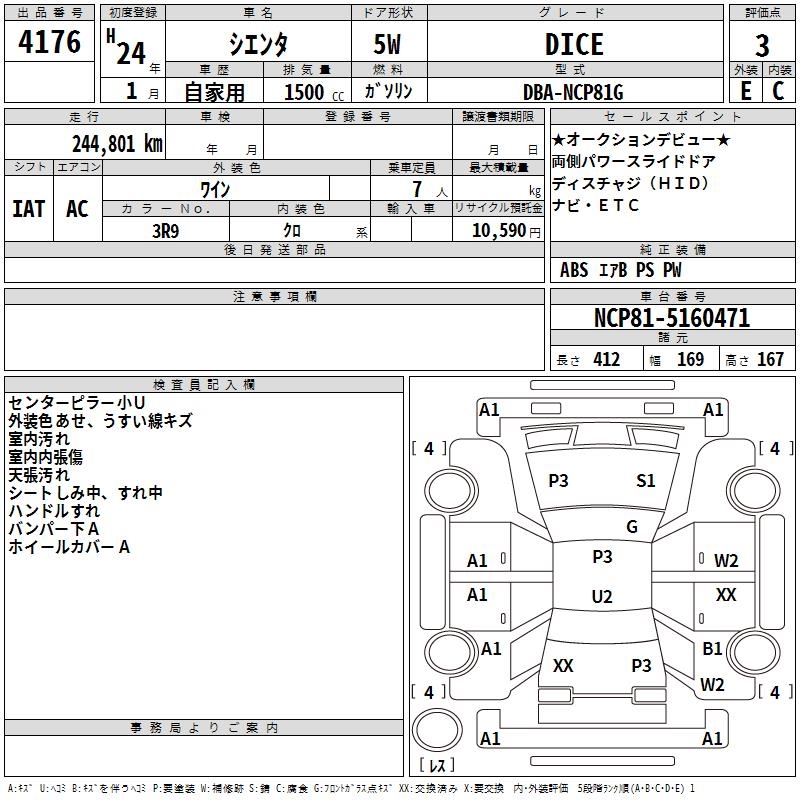 TOYOTA SIENTA DICE - лот 4176