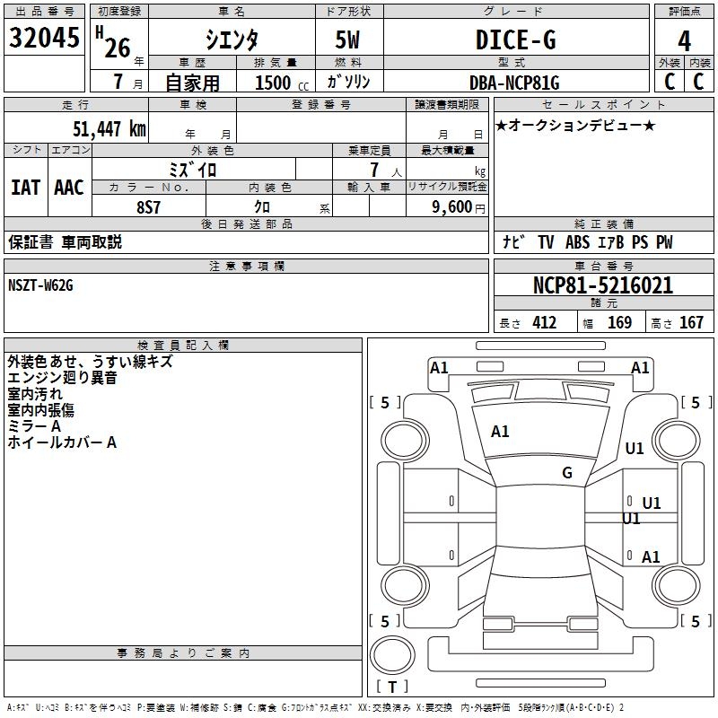 TOYOTA SIENTA DICE-G - лот 32045