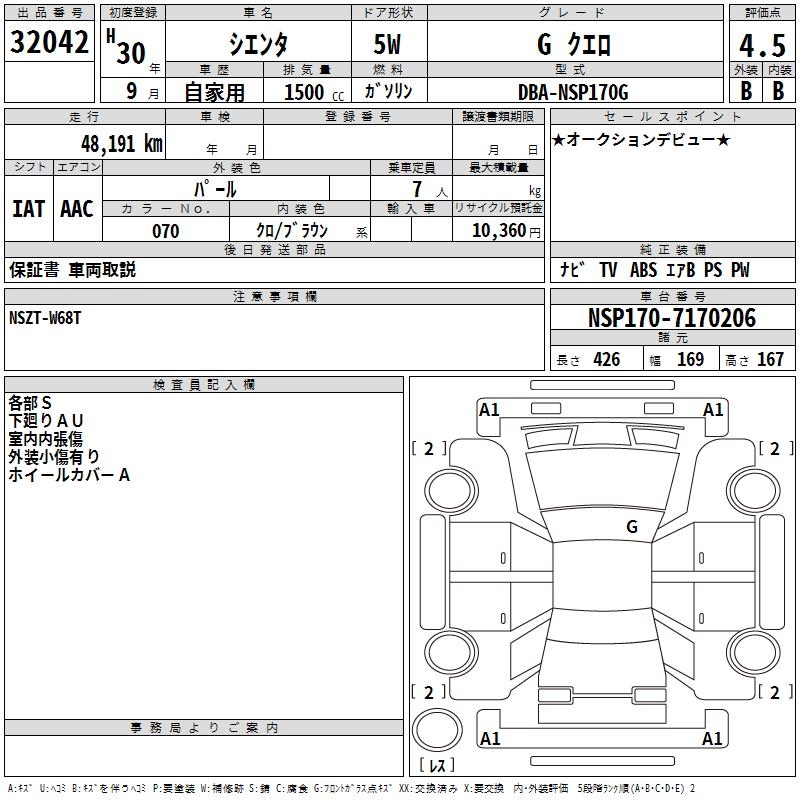 TOYOTA SIENTA GKERO - лот 32042