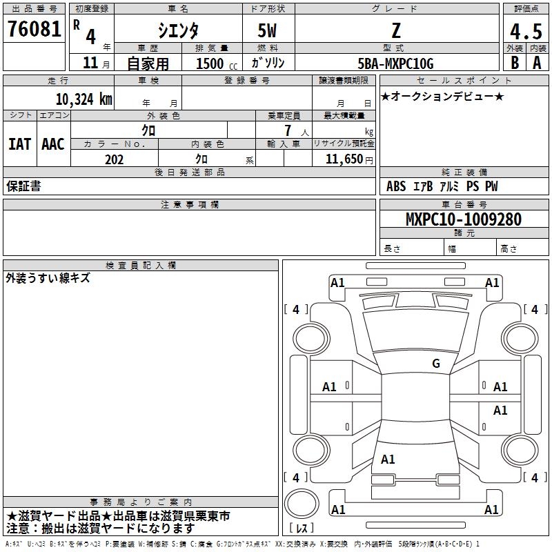 TOYOTA SIENTA Z - лот 76081