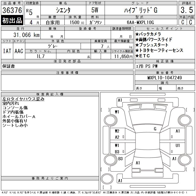 TOYOTA SIENTA HYBRID G - лот 36376