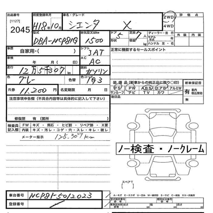 TOYOTA SIENTA X - лот 2045