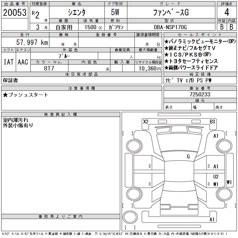 TOYOTA SIENTA FAN BASE G - лот 20053