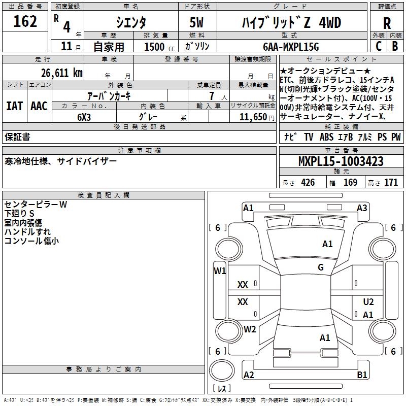 TOYOTA SIENTA HYBRID Z 4WD - лот 162