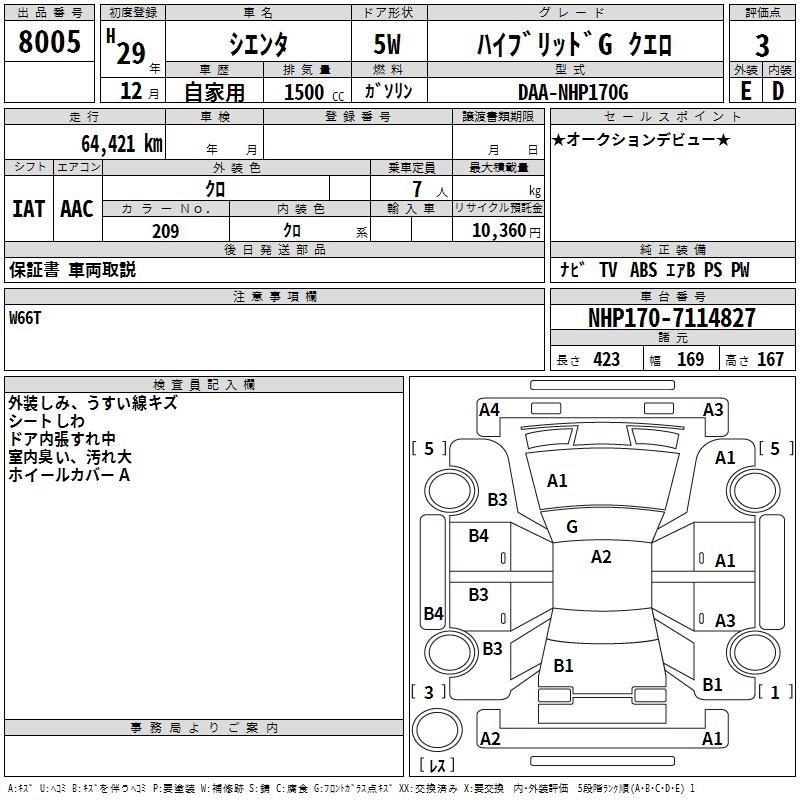 TOYOTA SIENTA HYBRID GKERO - лот 8005