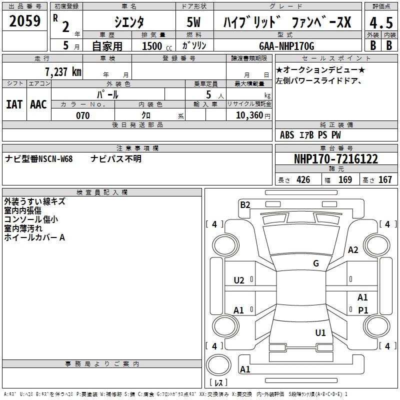 TOYOTA SIENTA HYBRID FAN BASE X - лот 2059