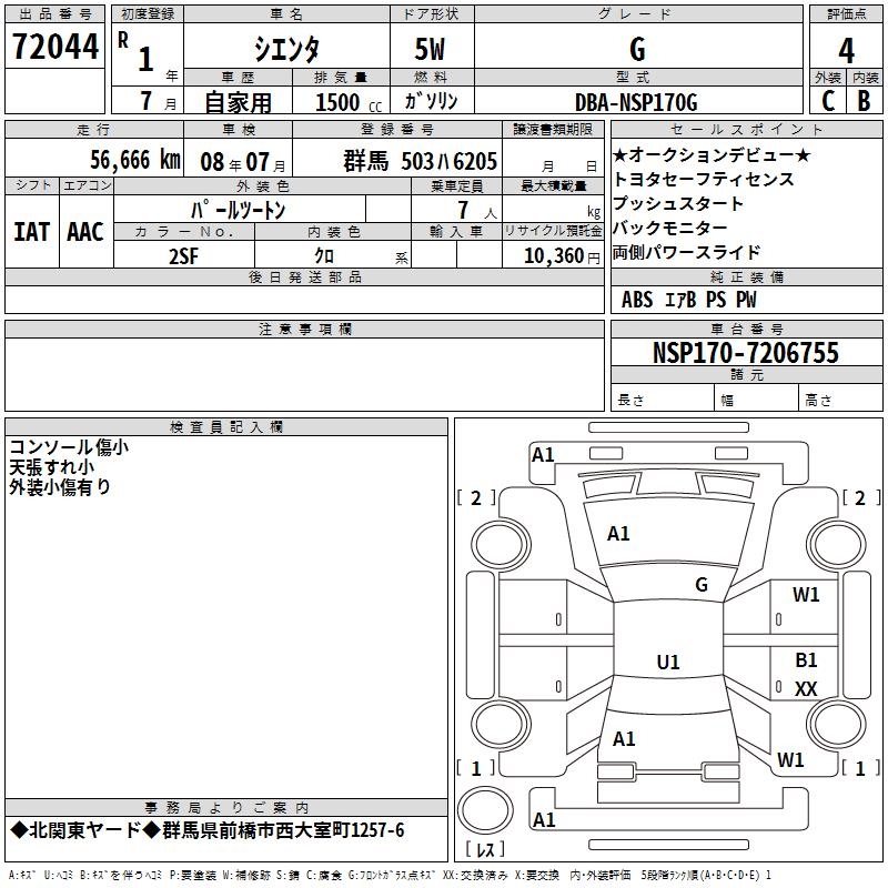 TOYOTA SIENTA G - лот 72044