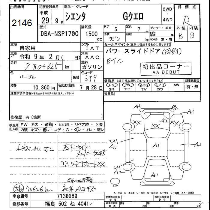 TOYOTA SIENTA GKERO - лот 2146
