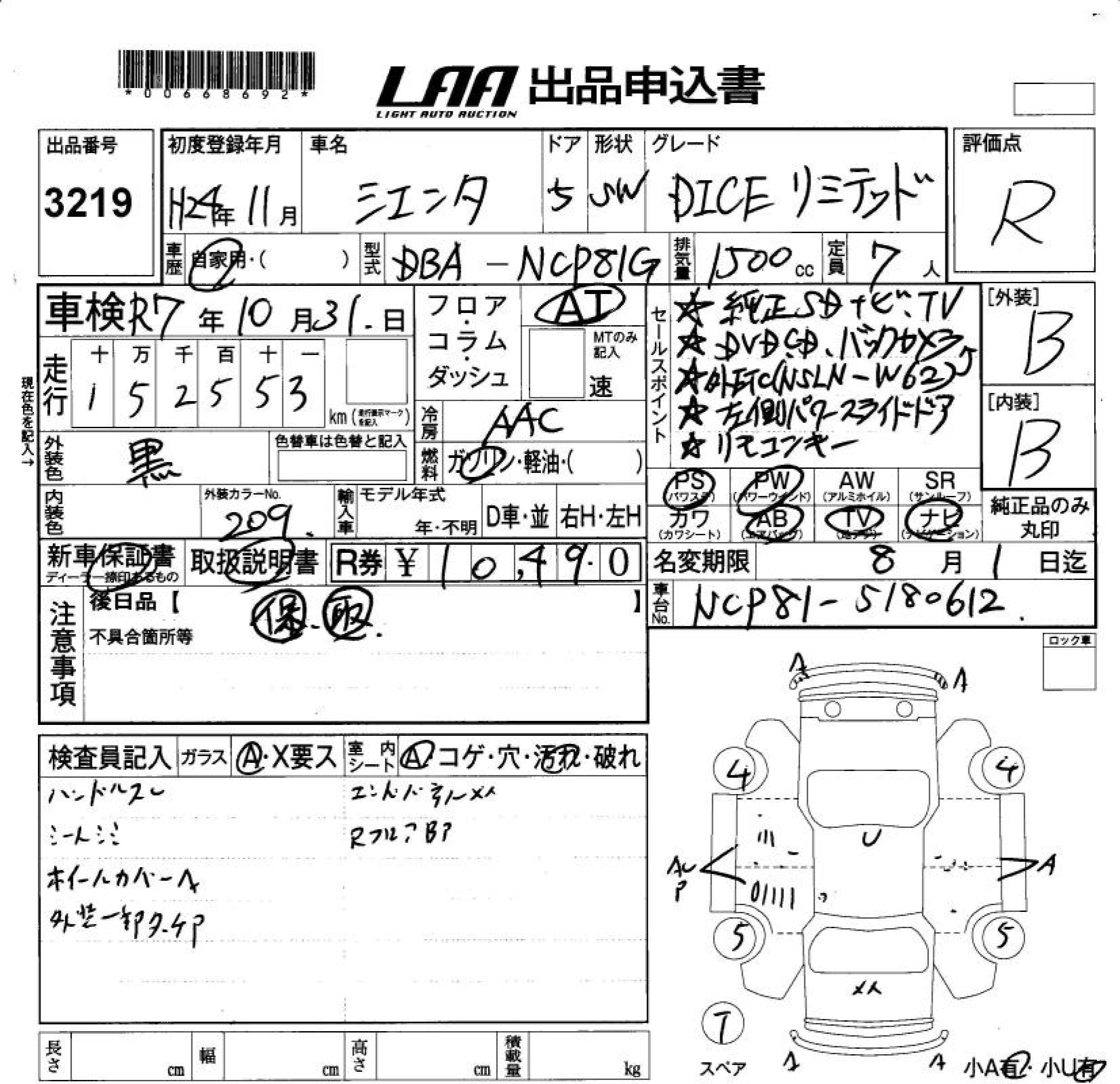 TOYOTA SIENTA DICE LIMITED - лот 3219