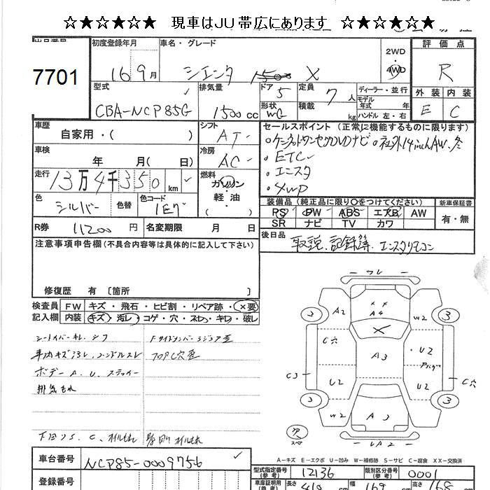 TOYOTA SIENTA 4WD X - лот 7701