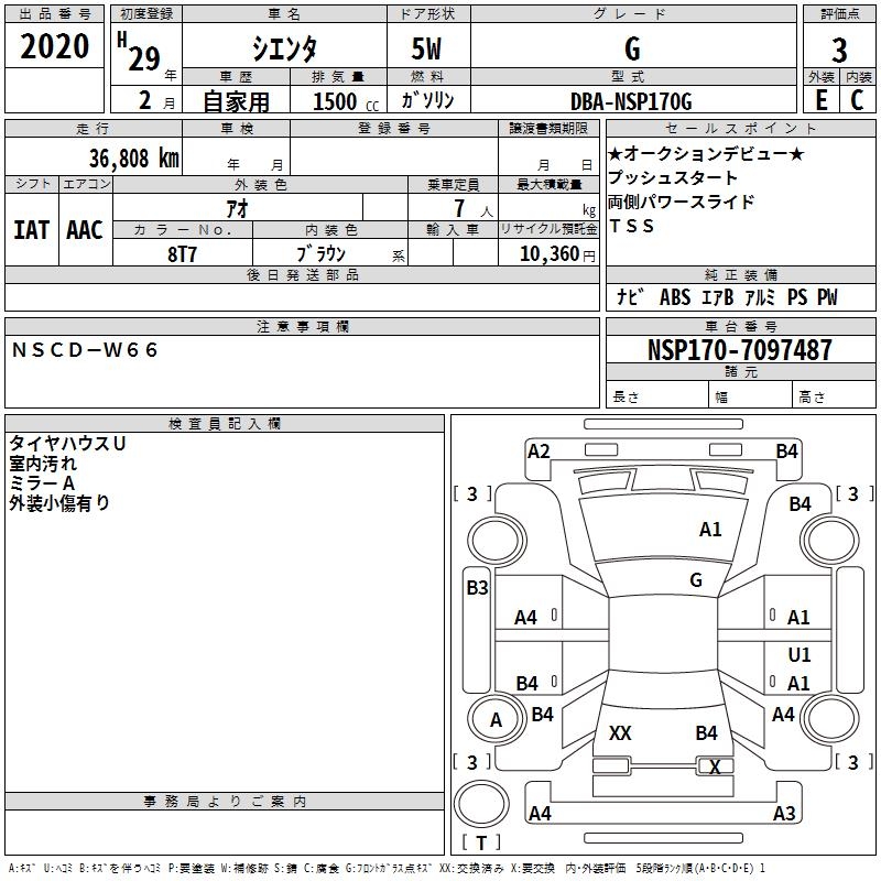 TOYOTA SIENTA G - лот 2020