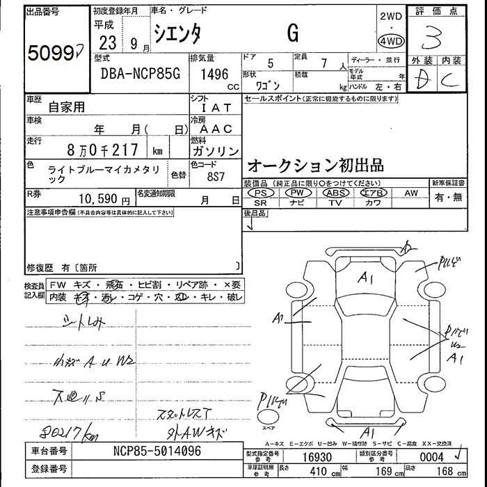 TOYOTA SIENTA 4WD G - лот 5099