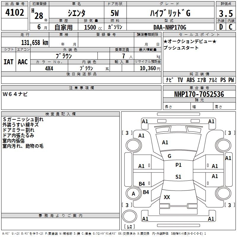 TOYOTA SIENTA HYBRID G - лот 4102