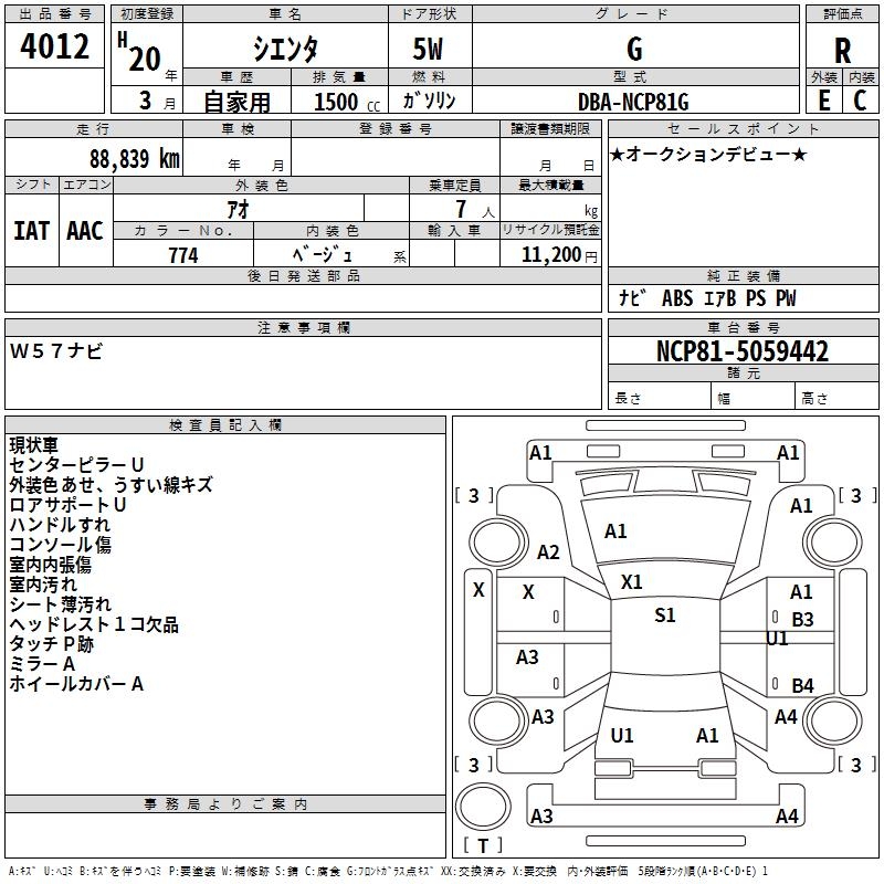 TOYOTA SIENTA G - лот 4012