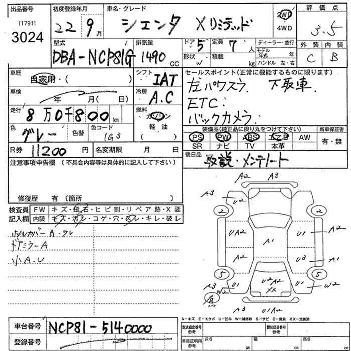 TOYOTA SIENTA X LTD - лот 3024