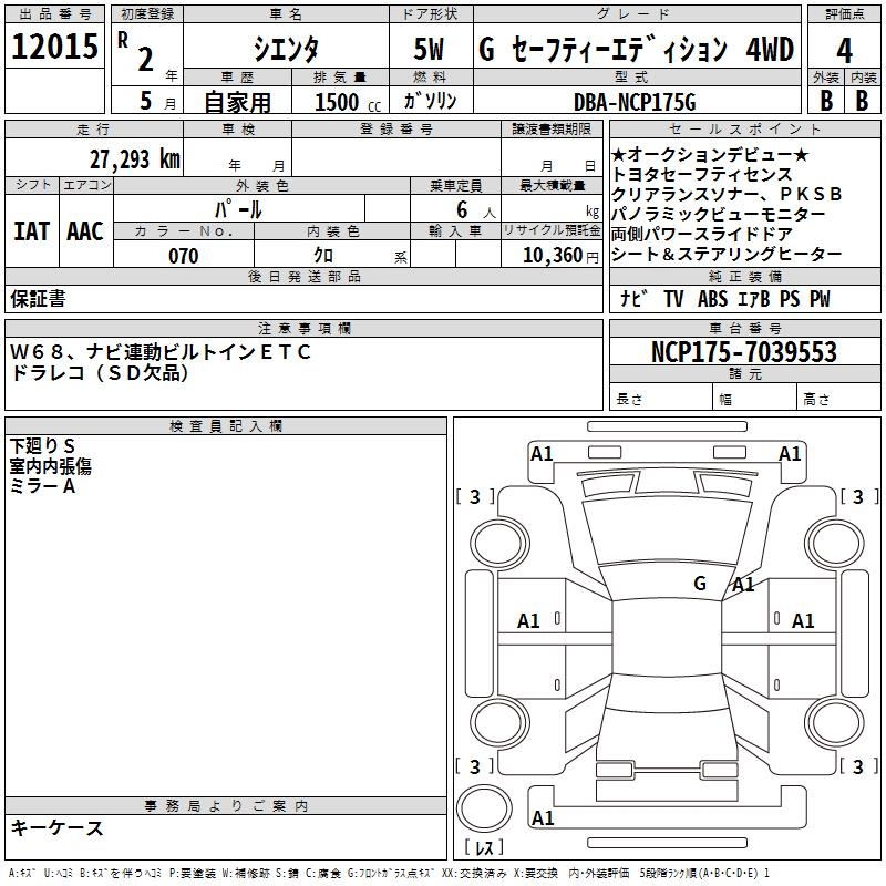 TOYOTA SIENTA G SAFETY - EDITION 4WD - лот 12015