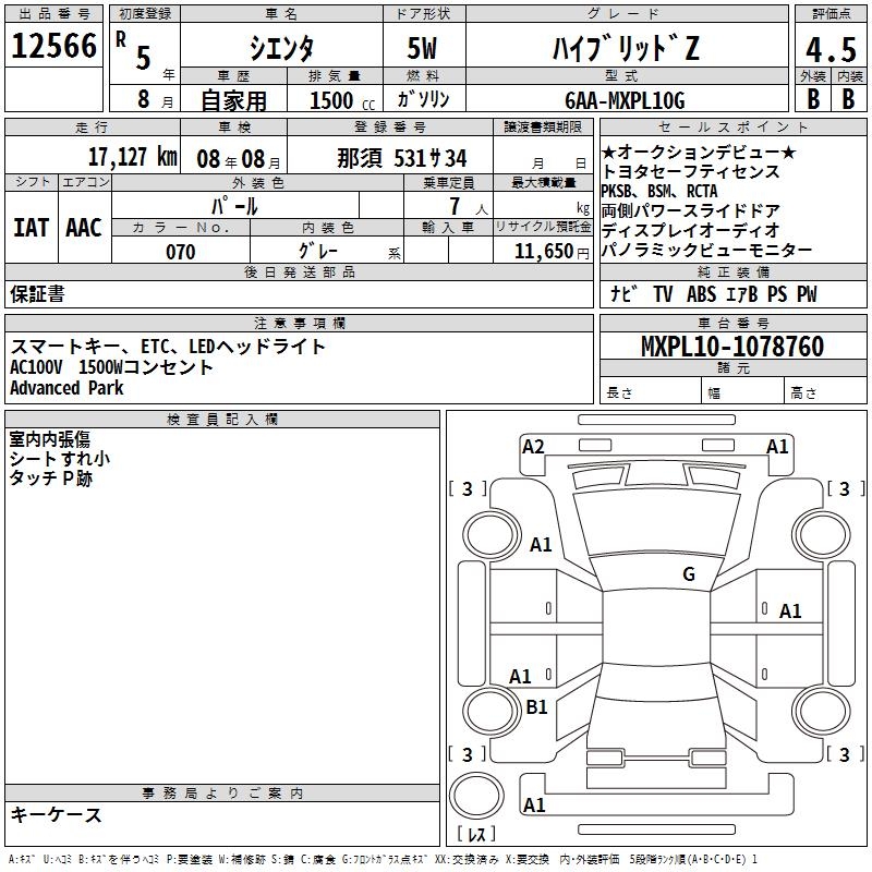 TOYOTA SIENTA HYBRID Z - лот 12566