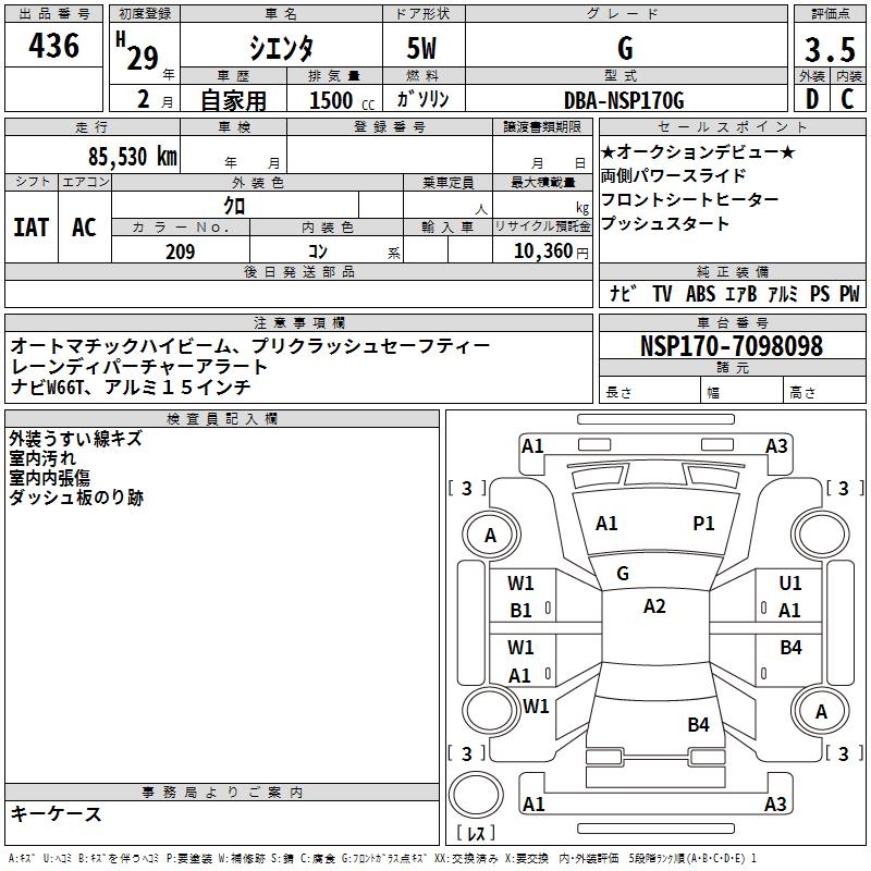 TOYOTA SIENTA G - лот 436