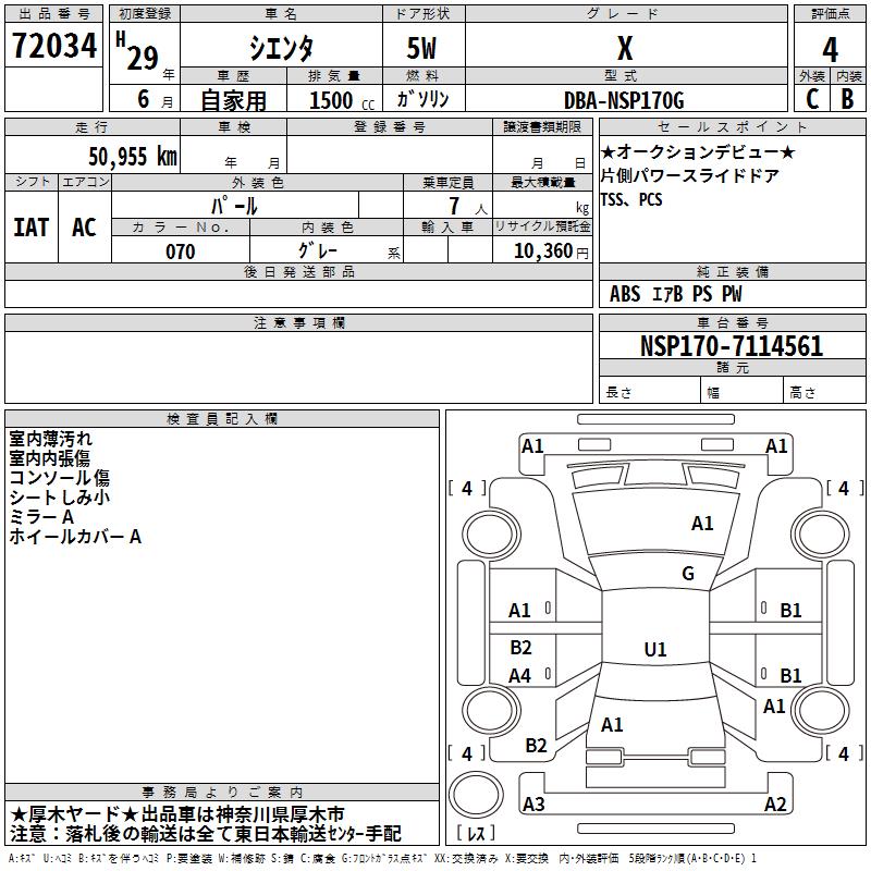 TOYOTA SIENTA X - лот 72034