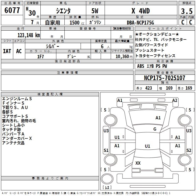 TOYOTA SIENTA X 4WD - лот 6077