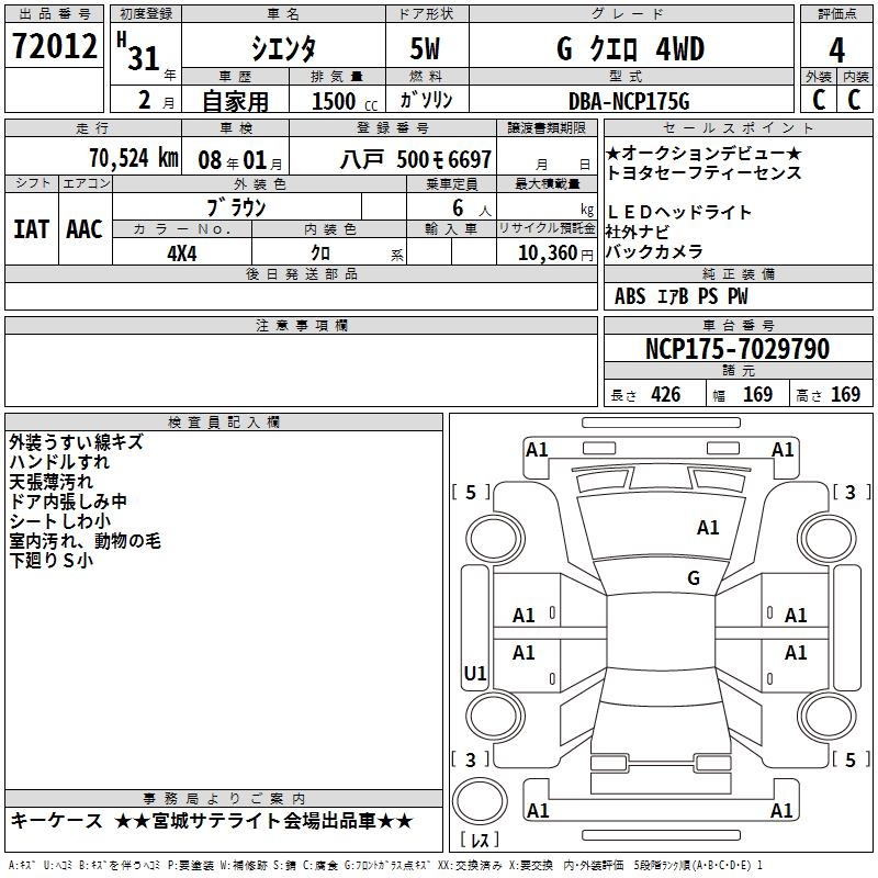 TOYOTA SIENTA GKERO4WD - лот 72012